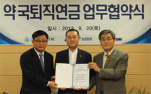 약사회는 근로복지공단이 운용해 안정성이 확보되고 운용관리 및 자산관리 수수료가 저렴한 퇴직연금 상품을 약국이 선택할 수 있도록 근로복지공단의 자산관리기관인 삼성화재와 협약을 맺었다.