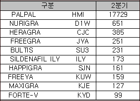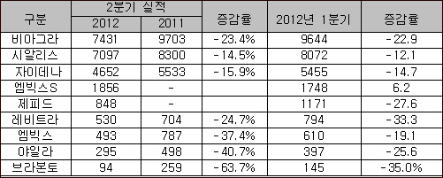 - 2분기 비아그라 23%, 시알리스 15%, 자이데나 16% 하락