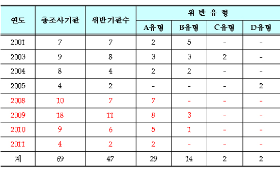 또 복지부가 2001~2005년 건강보험 업무정지기관 679개 중 28개, 2008~2011년 건강보험 업무정지기관 925개 중 41개 기관을 대상으로 샘플(의료급여 업무정지기관 포함) 조사한 결과 69곳 중 47곳이 행정처분 기간 중 진료를 실시한 사실이 드러났다.