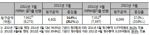 청구량 또한 같은 기간 49.3%에서 47.2%로 2.1% 감소했다.