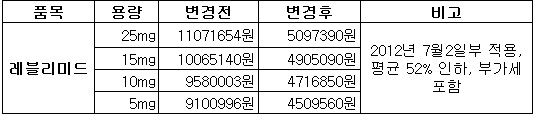 ◆레블리미드 자진 약가인하의 의미=환자단체, 의사들의 염원은 이 약의 급여화다.