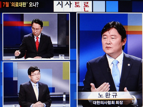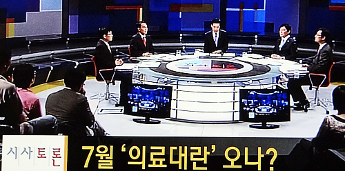 대한의사협회 노환규 회장, 윤용선 보험전문위원과 보건복지부 박민수 과장, 서울의대 김윤 교수는 16일 SBS '시사토론'에서 포괄수가제로 인한 '7월 의료대란'을 해결할 수 있는 타협점을 논의했다.
