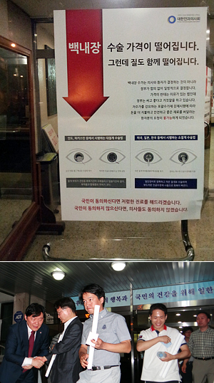 안과 의사들의 설명에도 불구하고 수술중단 기간인 7월 1일부터 7일까지 백내장수술을 원하는 환자가 발생할 경우, 5만원 이하의 수정체로 수술을 할 수 밖에 없다는 것을 이유로 들면서 설득하는 작업을 하겠다는 것이다.