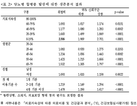 복지부는 심평원이 2010년 고혈압과 당뇨병 환자 치료지속성에 따른 합병증 발생률 차이를 분석한 결과 이 같이 분석됐다고 2일 밝혔다.