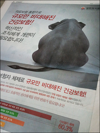 이에 앞서 의사협회는 26일자 한 일간지 전면광고를 통해 "독점적 단일보험자 체계로 규모만 비대해진 건강보험!"이라며 통합 공단을 폄훼했다.