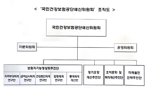 이 가운데 보험자 기능 정상화 추진단 산하로 4개 연구반과 1개 개선반이 꾸려진다.