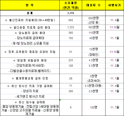 전체적으로는 내년도 보장성 확대 재정규모는 총 3319억원이며, 추가로 혜택을 받는 국민은 약 135만명에 이를 것으로 추산된다.