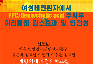 계명대동산병원 서영성교수팀(가정의학과)은 여성비만환자에서 PPC제제(리포빈주)주사 후의 효과 및 안전성에 관한 연구결과 허리둘레가 감소하고 특별한 부작용이 없는 것으로 나타났다고 최근 발표했다.