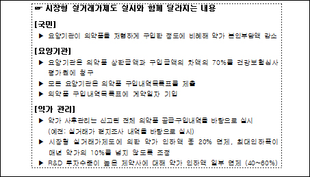 복지부는 또 시장형 실거래가제도에 따른 세부 약가인하 방안과 절차를 내용으로 하는 보건복지부 고시 개정안을 6월 중 행정예고해 의견을 수렴할 예정이라고 설명했다.