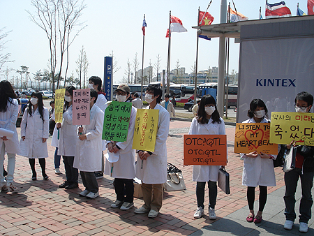 온라인 동호회 약사 미래를 준비하는 모임, 전국약대학생협의회 소속 약사, 약대생 100여명은 2일 킨텍스 약사대회장에서 대한약사회 집행부를 비난하기도 했다.