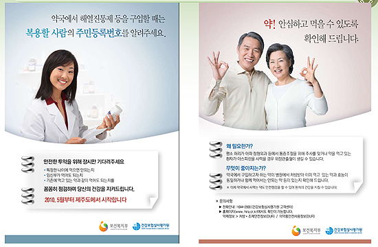 포스터에는 '약국에서 해열진통제 등을 구입할때는 복용할 사람의 주민등록번호를 알려주세'란 문구가 적혀있다.