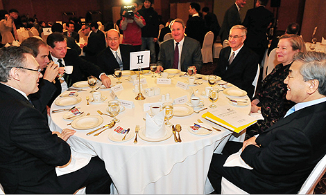 정책설명회에는 에이미 잭슨 주한미국상공회의소 대표, 윌리엄 오벌린 보잉코리아 사장, 인요한 세브란스병원 국제진료센터소장, 아와야 쯔토무 한국미쓰비시상사 대표, 요세프 마일링거 지멘스 코리아 사장, 리차드 힐 SC제일은행장, 장 마리 위르띠제 르노삼성자동차 대표 등이 참석했다.