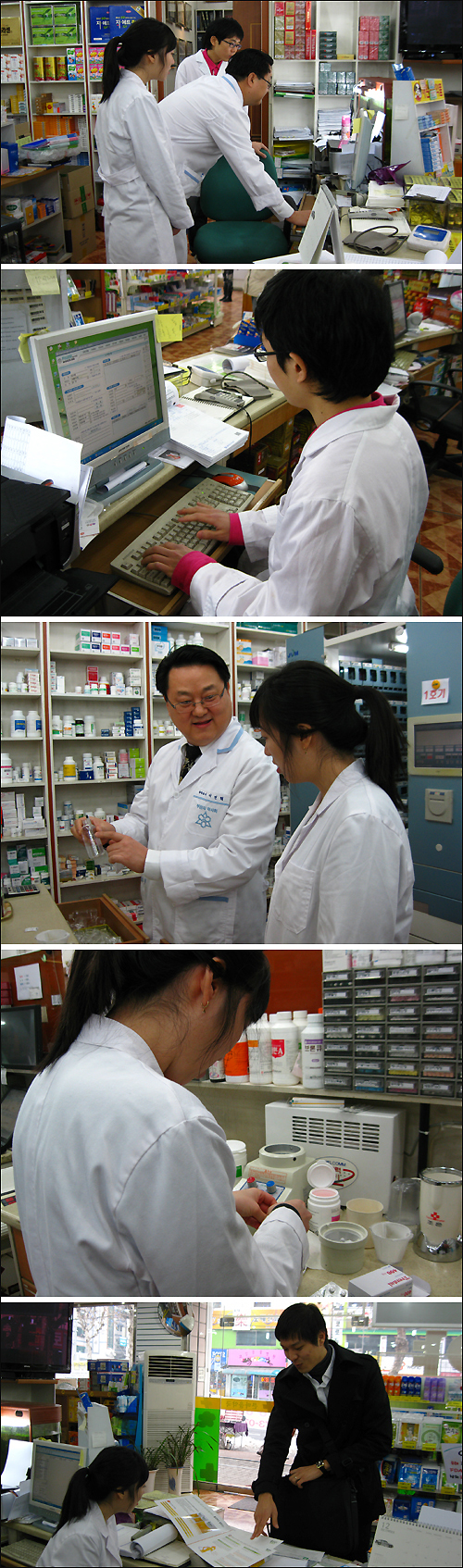 또한 실습생들은 약사면허가 없어 근무약사들과 같은 실제 조제 업무를 수행할 수 없기 때문에 이에 준한 참관과 약국 기기 사용법과 처방전 전산입력 및 업무 사이클 등 기본적인 업무를 먼저 배웠다.
