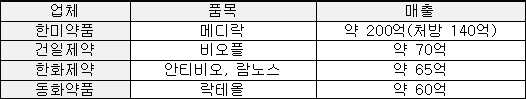 실제로 비급여 품목리스트에 포함된 제품을 분석한 결과 한미약품 ‘메디락’, 동화약품 ‘락테올’, 건일제약 ‘비오플’, 한화제약 ‘안티비오’ 등 락토바실루스아시도필루스 성분 정장제의 심각한 매출 손실이 예상된다.