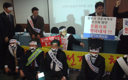 지식경재부발 전문자격사 도입방안도 논란의 한 가운데에 있다. 약대생들은 계약학과 신설에 맞서 때이른 추위에 고군분투 중이다.