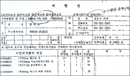 12일 강남구약사회(회장 고원규)에 따르면 지난 달 강남구 소재 P약국에서 한 환자가 요양기관 기호를 확인할 수 없는 처방전으로 코자플러스정, 아스피린프로텍트정, 탬보코정, 씨스코이알 서방정 등을 조제받은 사건이 발생했다.