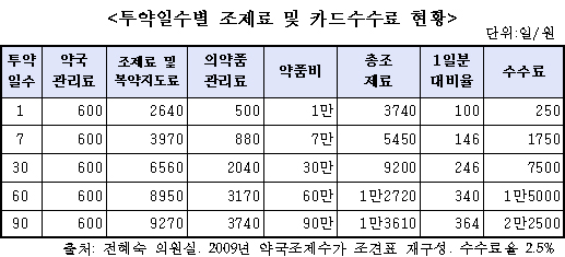 때문에 약품비 증가에 따라 카드수수료도 늘어나지만 장기 투약의 경우에 카드수수료가 조제수가를 잠식하는 결과가 초래된다는 지적이다.