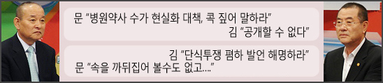 문 후보는 김 후보에게 공약으로 내세운 병원약사 수가 현실화 대책에 대한 대안을 밝히라고 압박했다.
