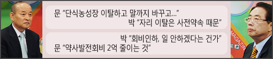 | 문재빈-박한일 | 회비인하·단식농성 놓고 공격과 수비