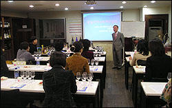 첫날 강의는 와인 따는 법을 시작으로 와인5가지(Sparkling Wine, White Wine, Red Wine, Sweet White Wine, Port Wine)의 특징 및 맛, 색깔, 향을 느끼는 방법, 시음요령 등 와인을 즐기는 기초적인 상식을 중심으로 이뤄졌다.
