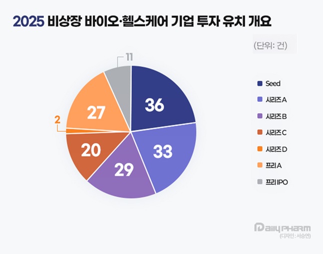 [데일리팜=차지현 기자] 올해 바이오·헬스케어 비상장 투자 시장은 '양적 팽창'에서 '질적 집약'으로 재편됐다. 전체 투자 건수는 전년 대비 30% 감소했지만 총 투자액은 오히려 15% 증가하면서 자금이 검증된 소수 기업으로 급격히 쏠렸다. 특히 상위 6% 기업이 전체 투자금의 40% 이상을 독식하며 비상장 투자 시장 전반에 '초양극화' 흐름이 뚜렷해진 모습이다.