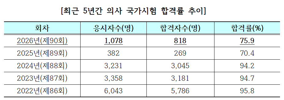 - 합격률 75.9%... 의정갈등 여파 합격자수·합격률 급감