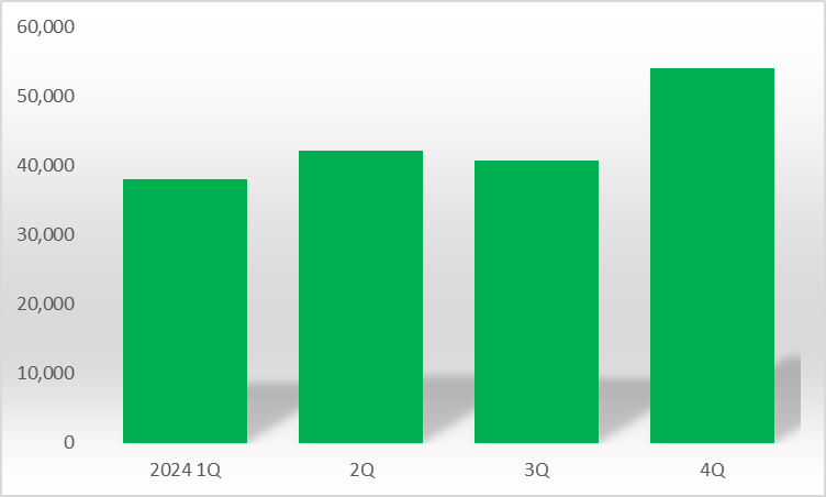 이 회사의 작년 4분기 영업이익은 연중 최저치다. 지난해 1분기 80억원의 영업이익을 냈고 2분기와 3분기에는 각각 274억원, 292억원으로 큰 폭으로 상승했다. 지난해 4분기 영업이익은 전 분기보다 84.6% 축소됐다.