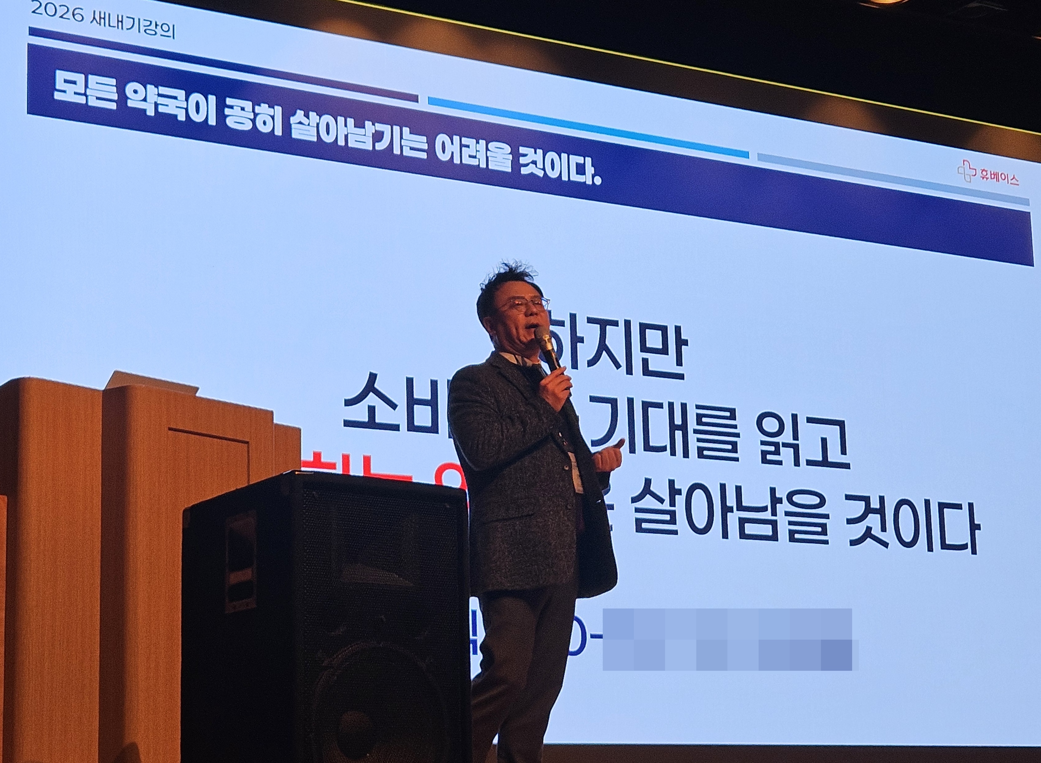 김현익 대표는 ‘첫 현장에서 살아남는 법’을 주제로 약국이 처한 구조적 위기와 생존 전략을 현장 경험을 바탕으로 풀어냈다.