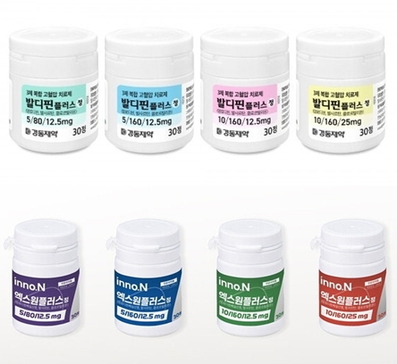 이번에 등재하는 3사 모두 고혈압 2제 복합제를 보유하고 있다. 경동은 발디핀정, HK이노엔은 엑스원정, 동광제약은 바로셋정이다.