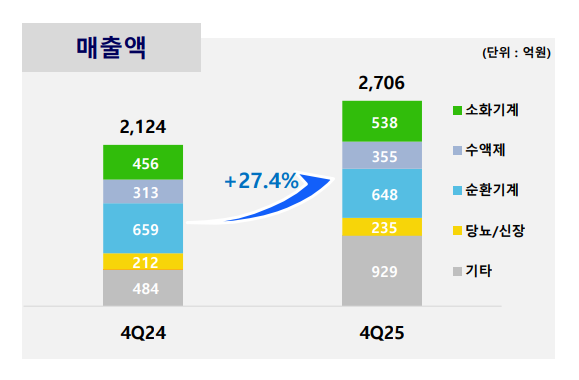 수액제 4분기 매출 355억원으로 전년 대비 13.5% 성장했다. 의료계 파업 해소 이후 병원 수요가 회복되면서 TPN 등 영양수액제 매출이 126억원으로 22.8% 증가했다.