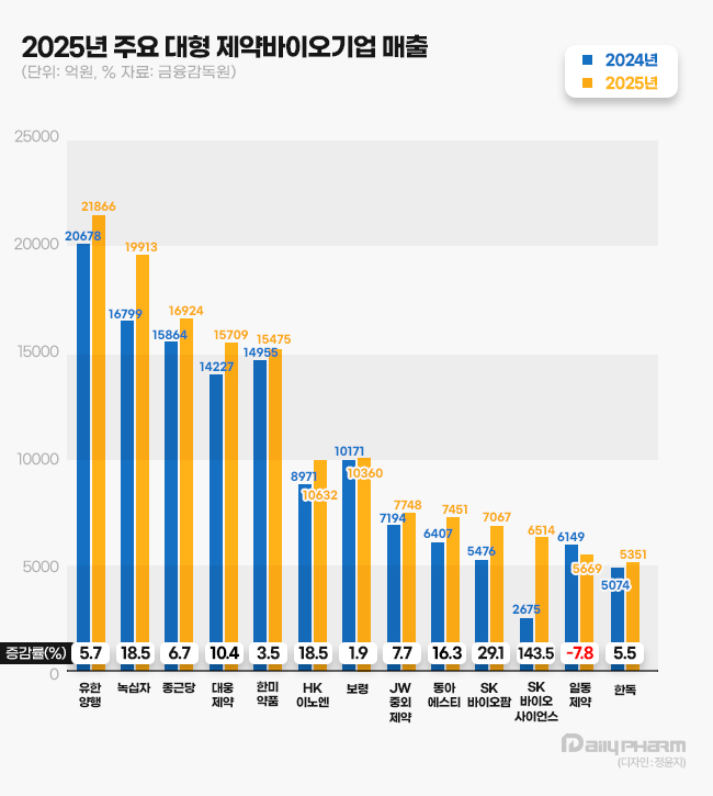 한미약품, 유한양행, JW중외제약, 보령 등은 자체 개발 신약을 기반으로 수익성이 크게 개선됐다.