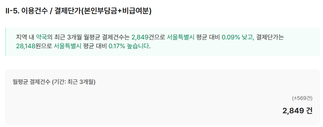 약국의 월 평균매출은 8385만원으로, 명동보다는 조금 낮았지만 을지로보다는 높았다. 최근 3개월 월 평균 결제건수는 2498건, 결제단가는 3만1513원이었다.