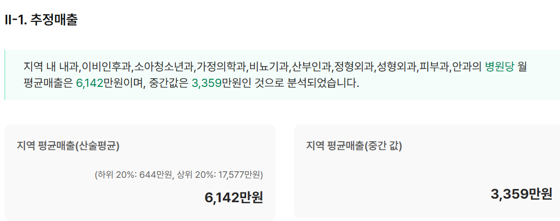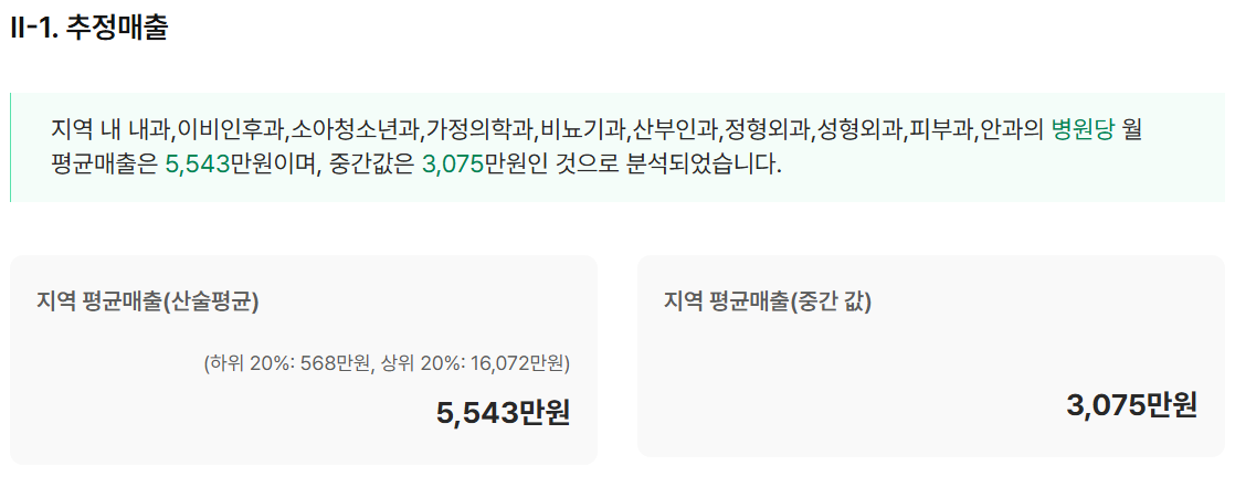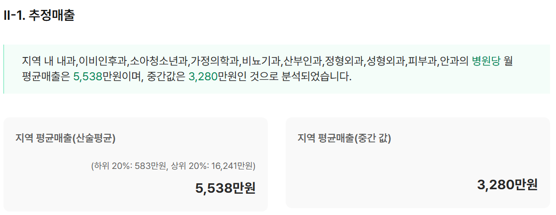 지역 내 의원의 월 평균 매출은 5538만원이며 중간값은 3280만원으로 나타났다.