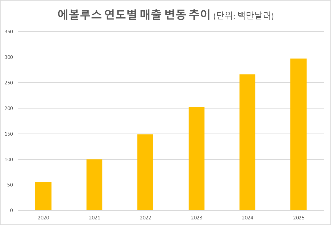 에볼루스는 올해에도 성장세를 이어가겠다는 목표다. 회사는 올해 매출 전망치를 3억2700만달러에서 3억3700만달러로 제시했다. 이는 전년 대비 10~13% 성장에 해당하는 수준이다.