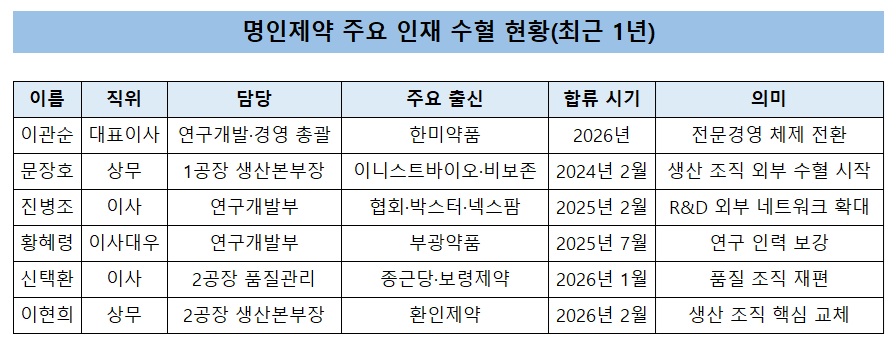 명인제약 순혈주의 깼다…외부 인재 수혈 본격화