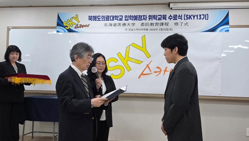 [데일리팜=강혜경 기자] 강남스카이어학원이 포스텍 출신 손명규 씨가 일본 북해도의료대학 치과대학에서 최우수 장학생에 해당하는 '특대생A'로 선발돼 6년간 약1300만엔의 장학 혜택을 받게 됐다고 밝혔다.