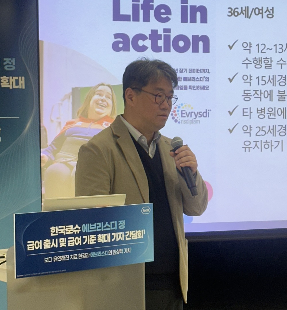 박형준 강남세브란스병원 신경과 교수는 "최근 유럽 리얼월드데이터를 보면 에브리스디는 치료 초기 6개월 내 유의미한 기능 개선이 나타난 이후 장기간 안정적으로 유지되는 패턴을 보이고 있다"며 "특히 SMA 2·3형에서는 운동 기능 개선과 유지 효과가 확인됐고, 1형 환자에서도 기능 저하 없이 안정적으로 유지되는 결과가 확인됐다"고 설명했다.