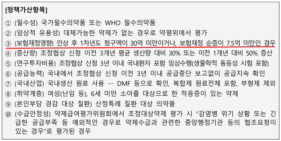 약가 협상 시 추가 이윤 1%를 인정해주는 정책 가산 항목 기준이 완화되면서 더 많은 약제가 혜택을 볼 수 있게 됐다.
