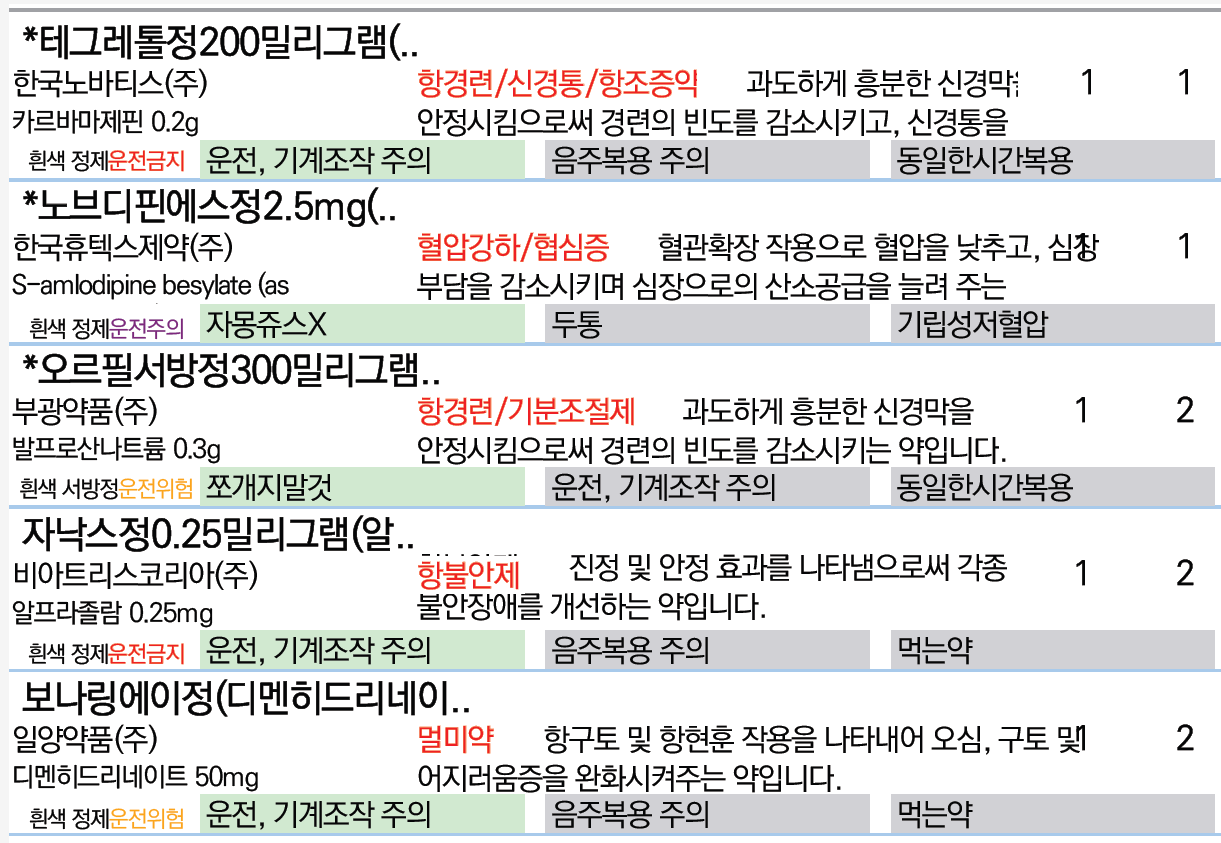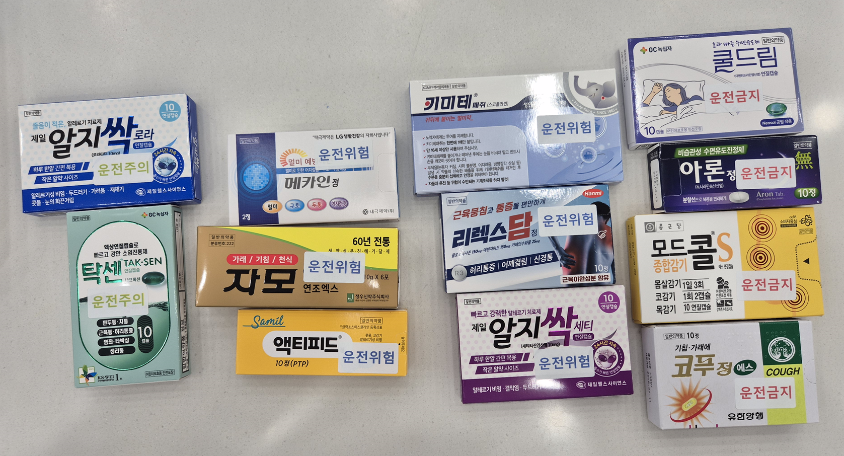 '운전주의-운전위험-운전금지' 스탬프 만들고 일반약에도 스티커 부착