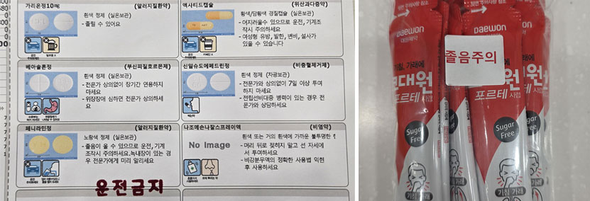 - 약봉투에 '운전주의, 졸음주의' 도장, 일반약에 라벨스티커 부착