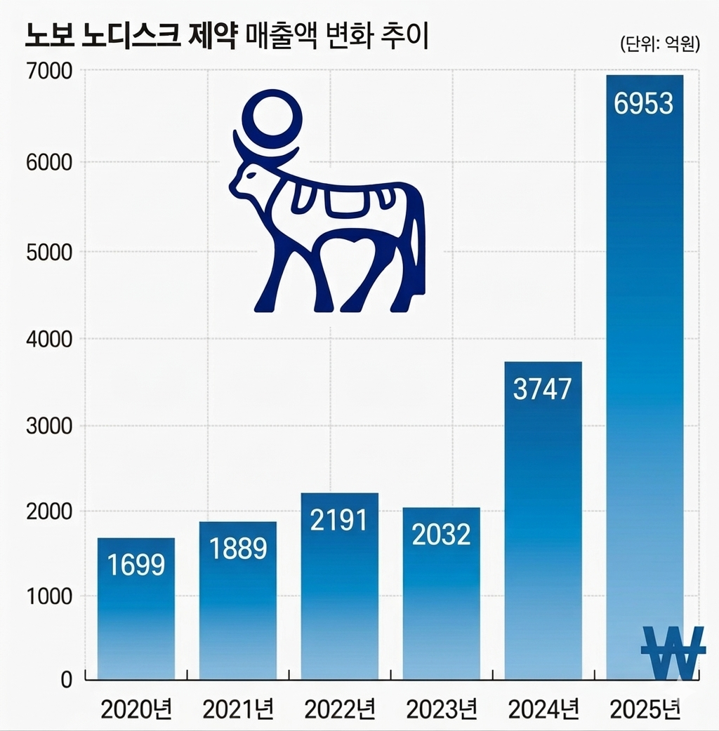 3일 금융감독원에 따르면 노보노디스크의 매출은 2024년 3085억원에서 지난해 6136억원으로 85.6% 증가했다. 같은 기간 영업이익은 137억원에서 242억원으로 77.1% 늘었다.