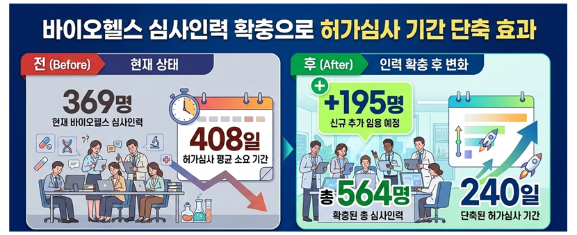 이번 인력 확충은 지난해 10월 16일 이재명 대통령 주재 제2차 핵심규제 합리화 전략회의에서 논의된 바이오헬스 산업 육성의 핵심 조치로, 규제과학 기반의 신속·정밀 허가·심사 체계를 강화해 국가 미래 성장동력 확보에 기여하기 위한 것이라는 설명이다.