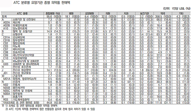 - ATC 분류별 요양기관 종별 의약품 소비량·판매액 통계