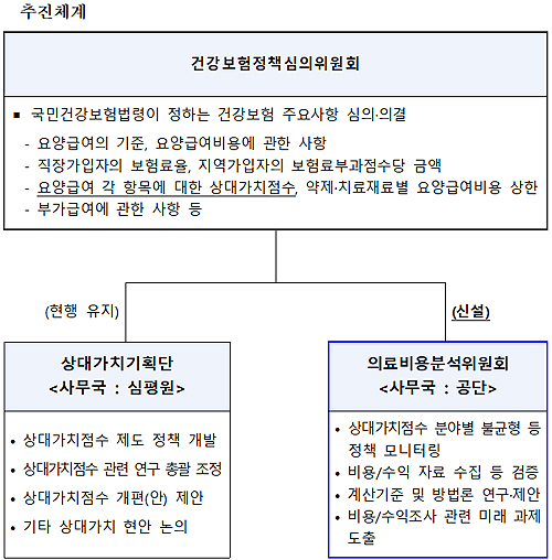 ◆의료비용분석위원회 구성․운영 = 요양기관 의료비용과 수익자료를 검증하고 활용하기 위해 건강보험정책심의회 산하 ’의료비용분석위원회‘를 신설해 운영할 계획이다.