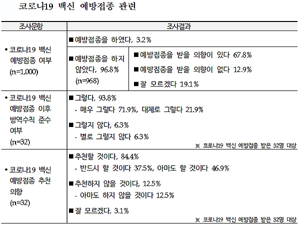 - 응답자 80% 가족감염 방지 목적...67% 집단면역 형성 응답도