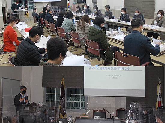 이날 회의에 앞서 중앙대 약대 서동철 교수가 '약국 약료에 대한 상대가치 연구' 발표를 진행했고 임원들의 질의응답도 이어졌다.