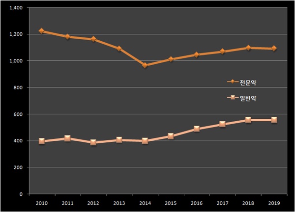 - 전문약 품목수 증가...평균 생산액은 감소