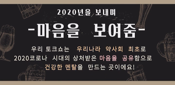 더불어 올 한해 코로나로 인해 상처받은 마음을 공유함으로써 건강한 멘탈을 만드는 소통의 장을 만드는 동시에 난생 처음 겪는 감염병 시대를 극복하기 위해 애쓰는 회원 약사들을 격려하기 위해 이번 자리를 만들었다고 전했다.