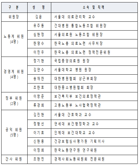 공익위원들은 또한 "보건의료인력 협업체계 구현을 위해서 중간 수준 전문가 신설 방안 논의를 신속하게 시작해야 한다"고 말했다.