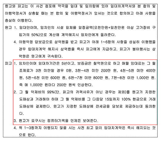 - 계약 시 조제료 3000만원 미만 “임대료 없다” 조건